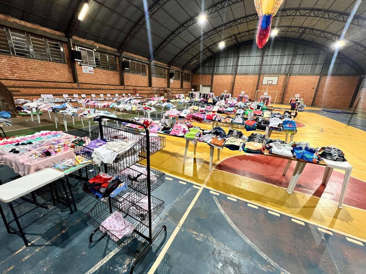 A Apae de Cascavel promove bazar duplo no ginásio de esportes, com Lupilu e Par Perfeito oferecendo produtos infantis e calçados a preços especiais.