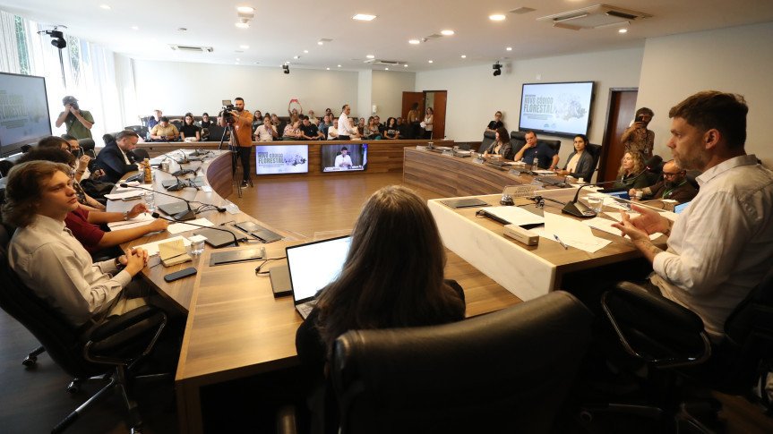 A Assembleia Legislativa realizou, na manhã desta quinta-feira, uma reunião pública sobre o tema "Novo Código Florestal – Análise Técnica do Projeto de Lei 80/2026 e seus impactos na gestão ambiental do Paraná". O deputado Goura (PDT), proponente do encontro, expressou preocupação com as brechas no projeto, citando um histórico de ataques ao meio ambiente durante o governo Ratinho Junior. Ele ressaltou a urgência de uma legislação que proteja a preservação ambiental e as espécies nativas, como a araucária.