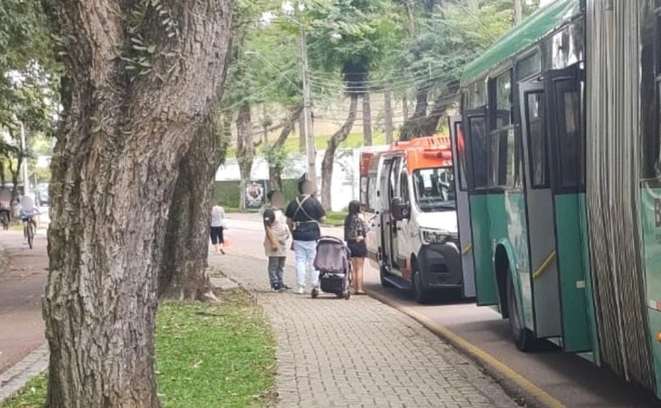 Um passeio em família terminou em susto na Rua Mateus Leme, no bairro São Lourenço, em Curitiba. Uma bebê de apenas dois meses caiu do carrinho dentro de um ônibus do transporte coletivo. Apesar do impacto, a criança não sofreu ferimentos graves.