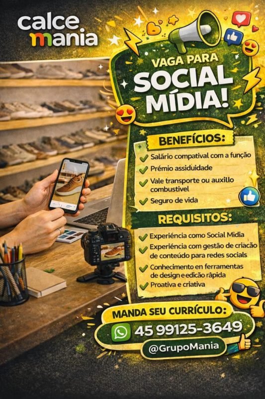 A empresa Calce Mania, do Grupo Mania, está em busca de um profissional de social media para fortalecer sua presença nas redes sociais. A contratação visa aprimorar o posicionamento digital da marca em um mercado que demanda agilidade visual e inovação.