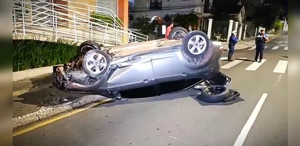 Câmera registra capotamento de carro no Centro de Ponta Grossa