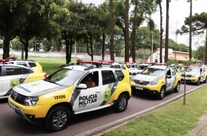 A Polícia Militar do Paraná foi acionada e, ao tentar conter o agressor, ele reagiu de forma violenta, avançando contra os policiais com uma faca e um machado. A situação representou um risco à integridade dos agentes que estavam presentes.