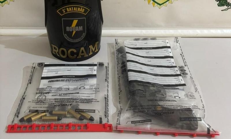 Uma equipe da Rocam do 3º BPM de Pato Branco/PR realizou uma operação bloqueio na PR 158 na localidade do Campo do Bugre. Na ocasião, um veículo GM/S10 transitava pela contramão de direção na tentativa de desviar da abordagem policial. A equipe realizou abordagem ao veículo e, em busca veicular, localizou um revólver marca Smith Wesson cal. 38, municiado com 6 munições, dentro de um coldre no porta-luvas do veículo.
