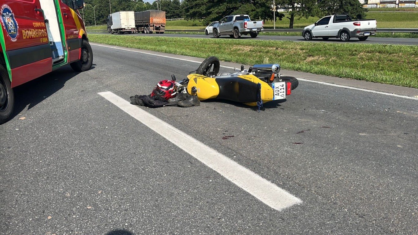 Um motociclista de 60 anos ficou gravemente ferido após bater na traseira de um carro na BR-116, trecho do Contorno Leste, em São José dos Pinhais, na Grande Curitiba, na manhã de sexta-feira (16). O acidente ocorreu na pista sentido São Paulo, próximo ao km 103, pouco depois das 8h.