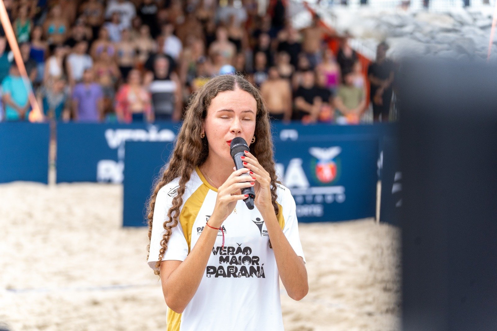 Corredora de destaque no cenário mundial do paratletismo, Isadora Venâncio demonstrou talento e versatilidade ao cantar o Hino Nacional no Desafio Olímpico de Vôlei de Praia, realizado neste domingo (11) em Caiobá.