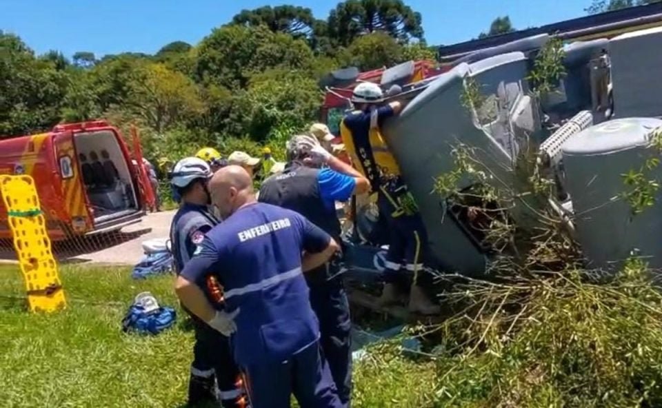 Um caminhoneiro de 56 anos ficou gravemente ferido após perder o controle de seu veículo e tombá-lo em uma curva na tarde desta quarta-feira (18). O acidente ocorreu na Rua Vereador Domingos Benvenuto Moletta, na Colônia Marcelino, em São José dos Pinhais.