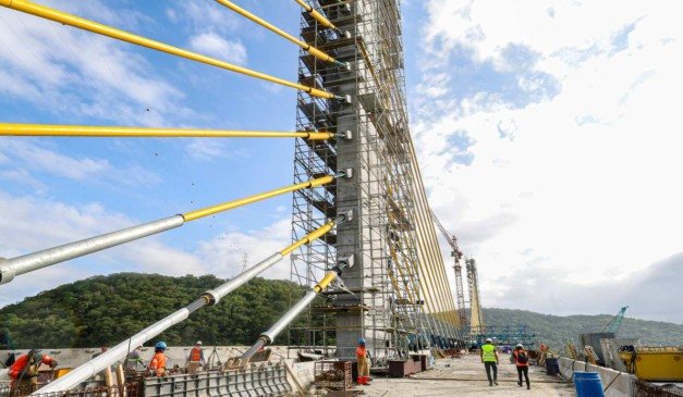 São 12 pares de estais fixados nos mastros dos apoios 04 e 05. As torres de sustentação têm 40 metros de altura, superando a altura do Cristo Redentor. O coordenador de Obras do Consórcio Nova Ponte, Carlisandro Silva, destacou os detalhes do processo de instalação, que envolveu lançamento e tensionamento dos cabos para garantir a concretagem da aduela 13.1.