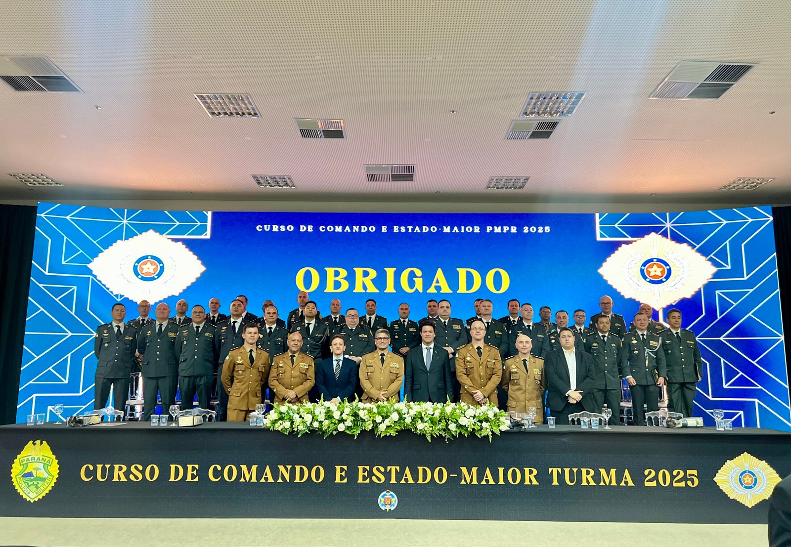A Polícia Militar do Paraná (PMPR) realizou, na noite desta sexta-feira, em Curitiba, a solenidade de formatura do Curso de Comando e Estado-Maior (CCEM) – Turma 2025. O evento marcou a conclusão de uma das mais relevantes etapas da formação do oficialato superior da corporação e reuniu autoridades civis e militares, familiares e convidados.