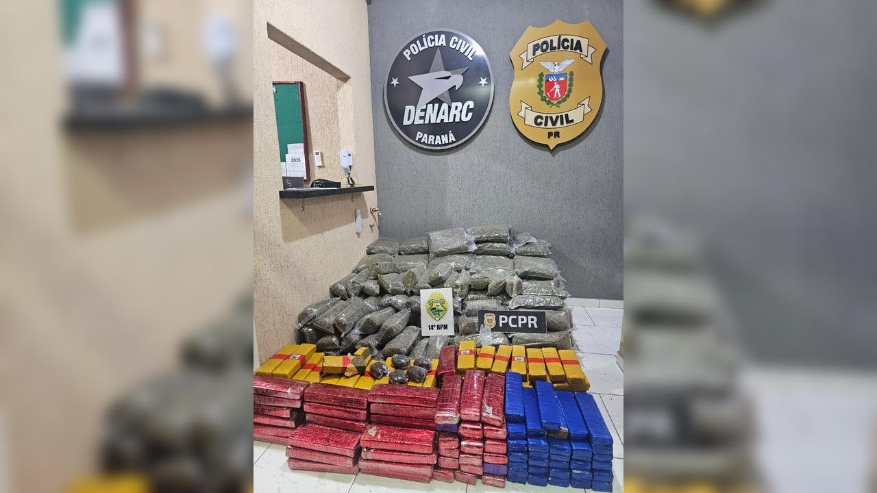 A Polícia Civil do Paraná, em operação conjunta com a Polícia Militar, apreendeu cerca de 291 kg de drogas na madrugada de domingo.