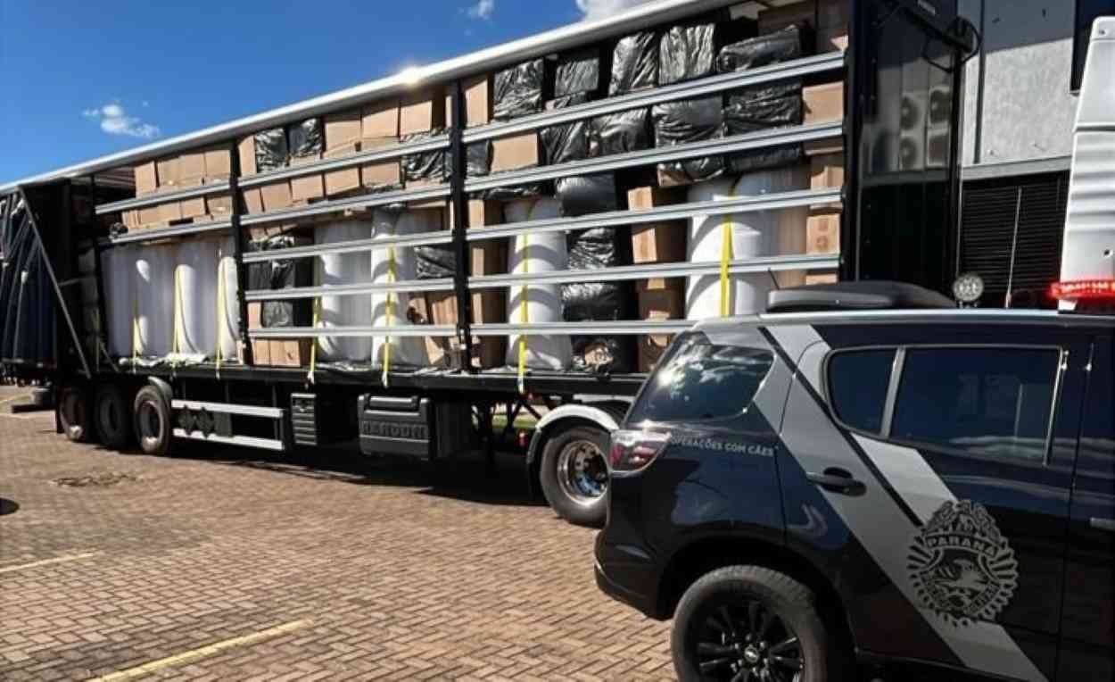 Uma carga estimada em R$ 2,5 milhões, composta por 700 caixas de cigarros do Paraguai — o equivalente a 35 mil pacotes —, foi apreendida em uma fiscalização na BR-369, em Campo Mourão (PR). O motorista do caminhão VW/28.460, de 44 anos, foi preso em flagrante por ultrapassagens perigosas em rota considerada de ilícitos.