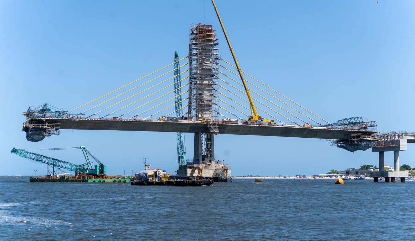 Com a conclusão de todas as estacas, a construção da Ponte de Guaratuba atingiu 88%, indicando a fase final do projeto.