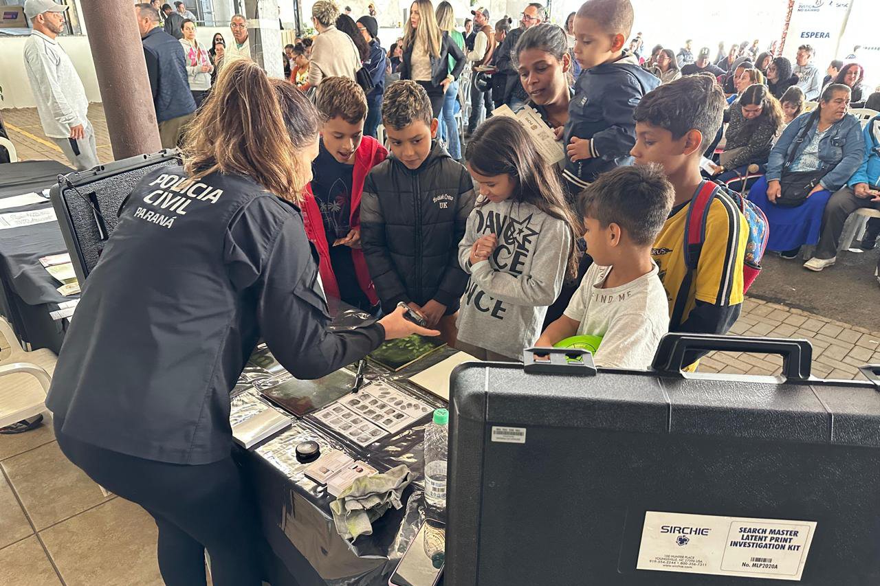 A ação anterior aconteceu no Centro de Convivência Prefeito Clóvis Cunha Vianna e incluiu atividades lúdicas para crianças, distribuição de materiais informativos e orientações sobre a polícia judiciária. O programa é uma iniciativa que ocorre regularmente em todo o Paraná, com o objetivo de levar serviços de polícia judiciária à população e promover um atendimento humanizado.