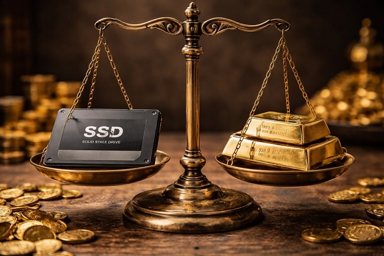 Para entender a comparação com o ouro, é necessário observar dois dados básicos: o valor do metal precioso por grama e o peso físico do SSD. Considerando uma cotação aproximada de 924 reais por grama de ouro e o peso médio de um SSD NVMe de 8 terabytes, que varia entre 7,5 e 8,8 gramas, o valor equivalente em ouro ficaria entre cerca de 7 mil e 12 mil reais.